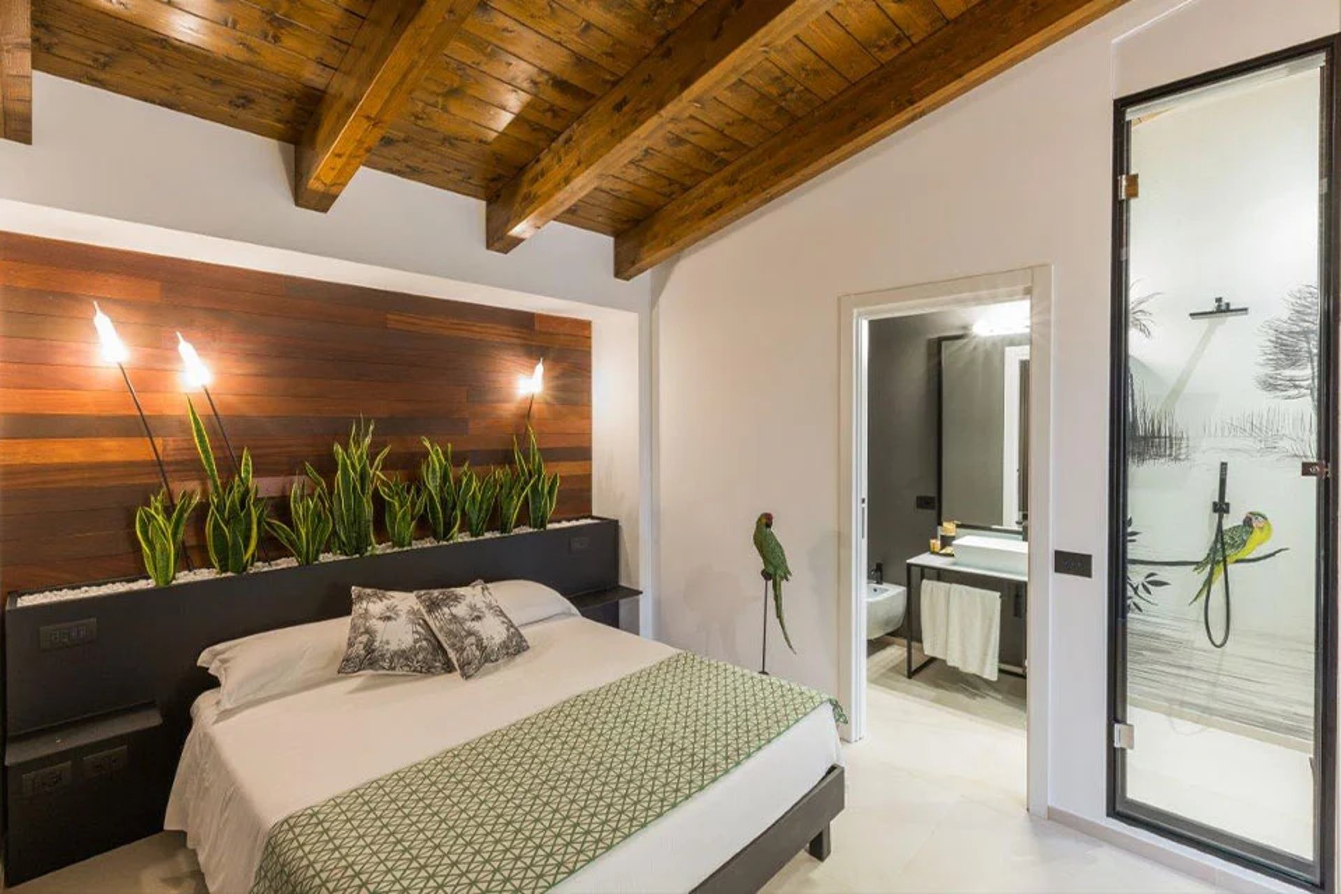La parete dietro il letto viene spesso dimenticata nei progetti illuminotecnici delle camere da letto. Al contrario, dato che stiamo parlando di una delle pareti più “in vista” di tutta la stanza, è importante valorizzarla opportunamente tramite la luce.